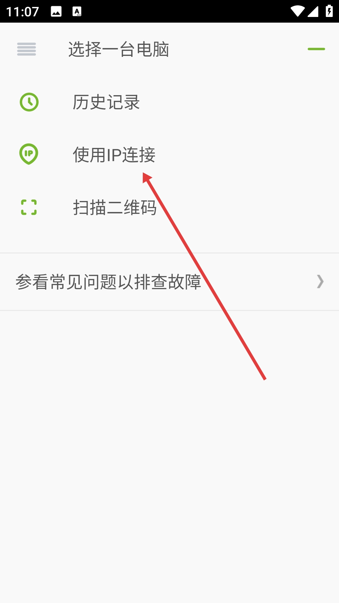 2、在连接方式列表里点击【使用IP连接】,即可进入IP输入页面。