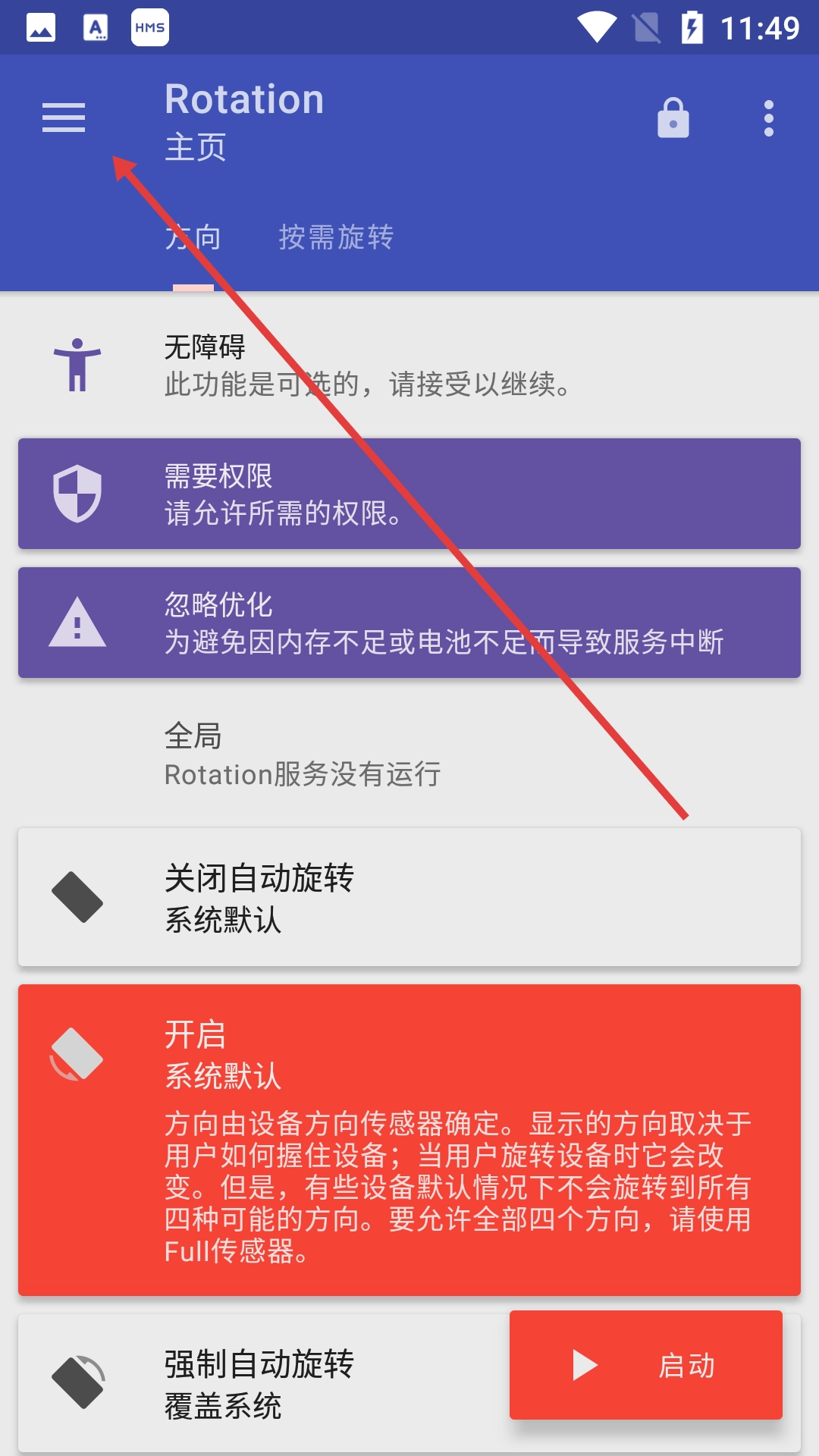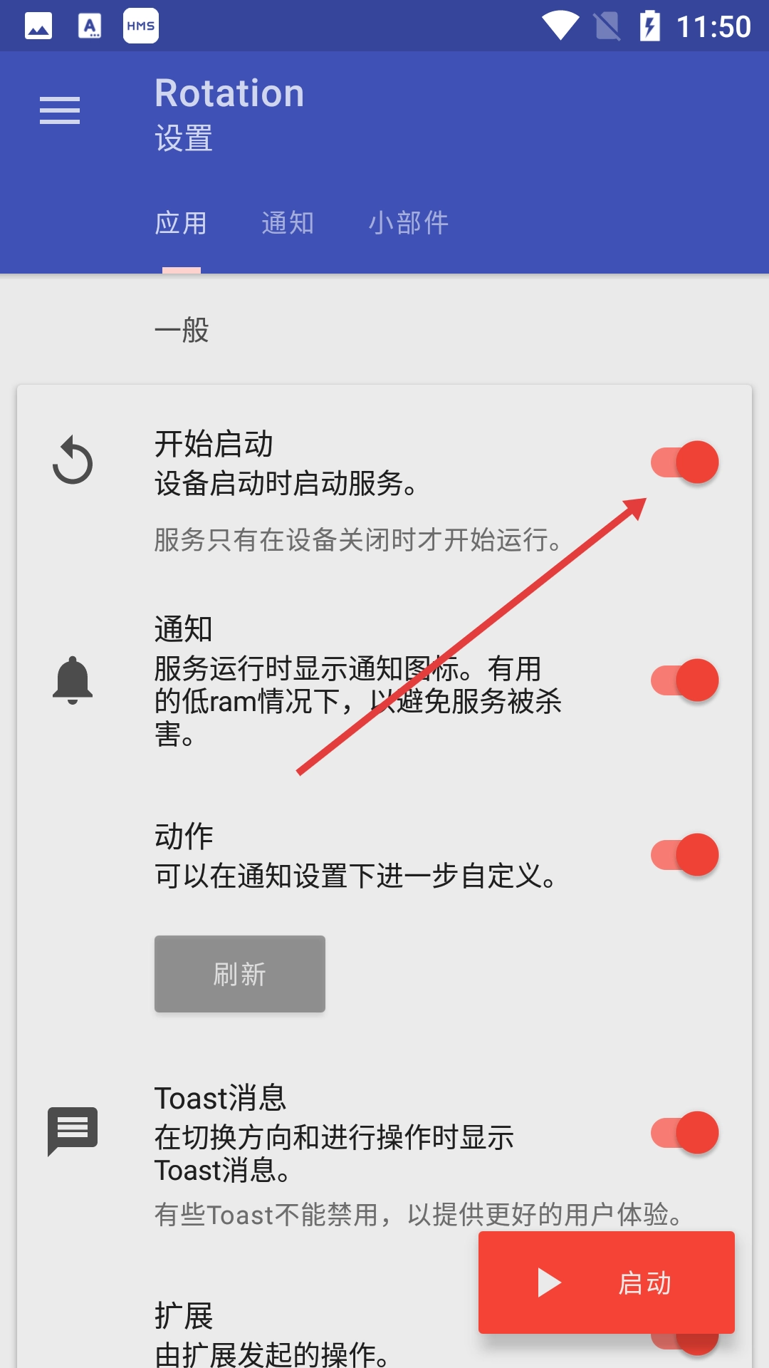 4、开启【开始启动】开关后,设备启动时会自动启动Rotation服务。