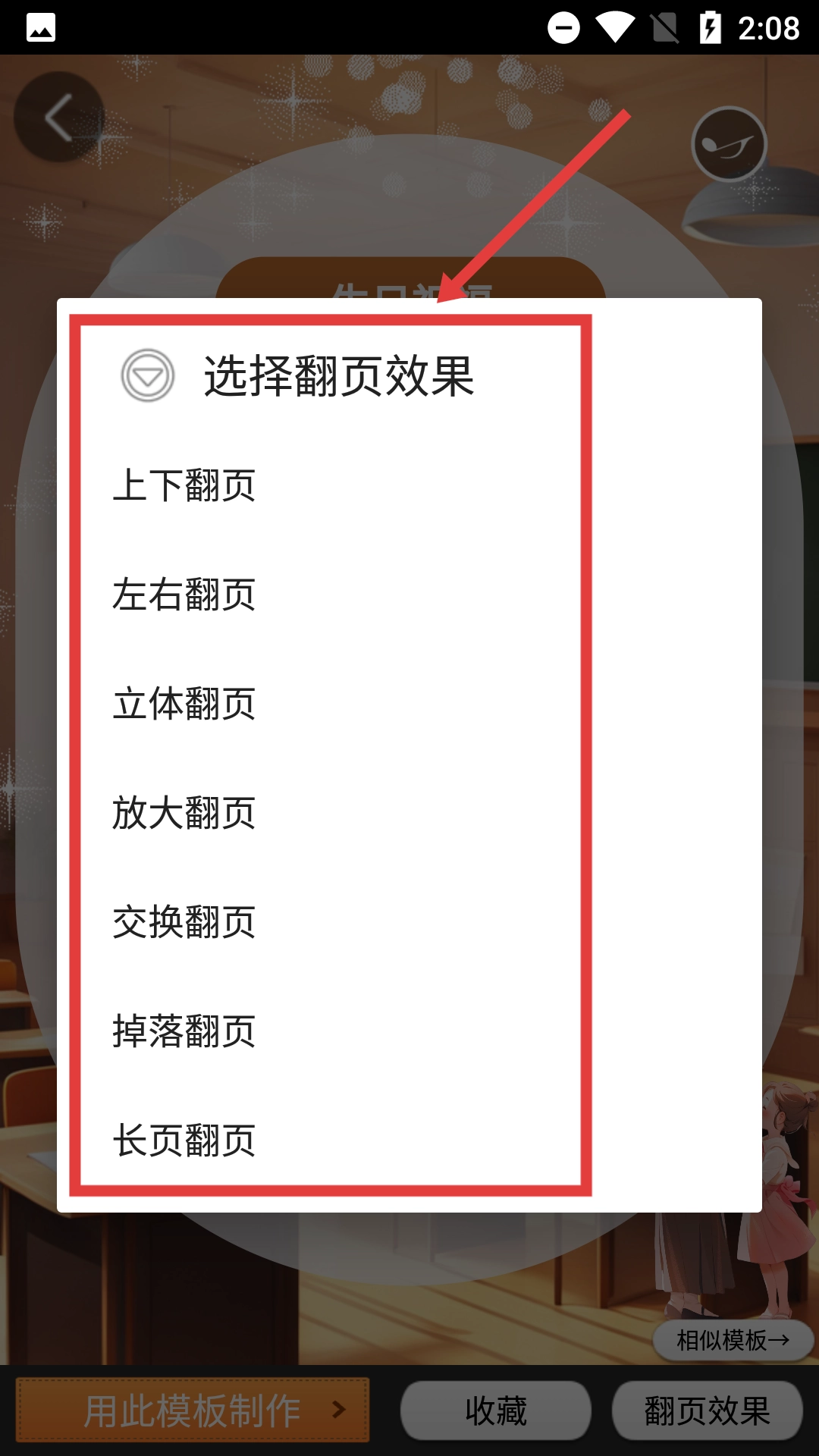 4、在翻页效果选择弹窗里,能够挑选上下翻页、左右翻页等多种翻页样式,依据实际需求选择合适的效果并应用到贺卡上。