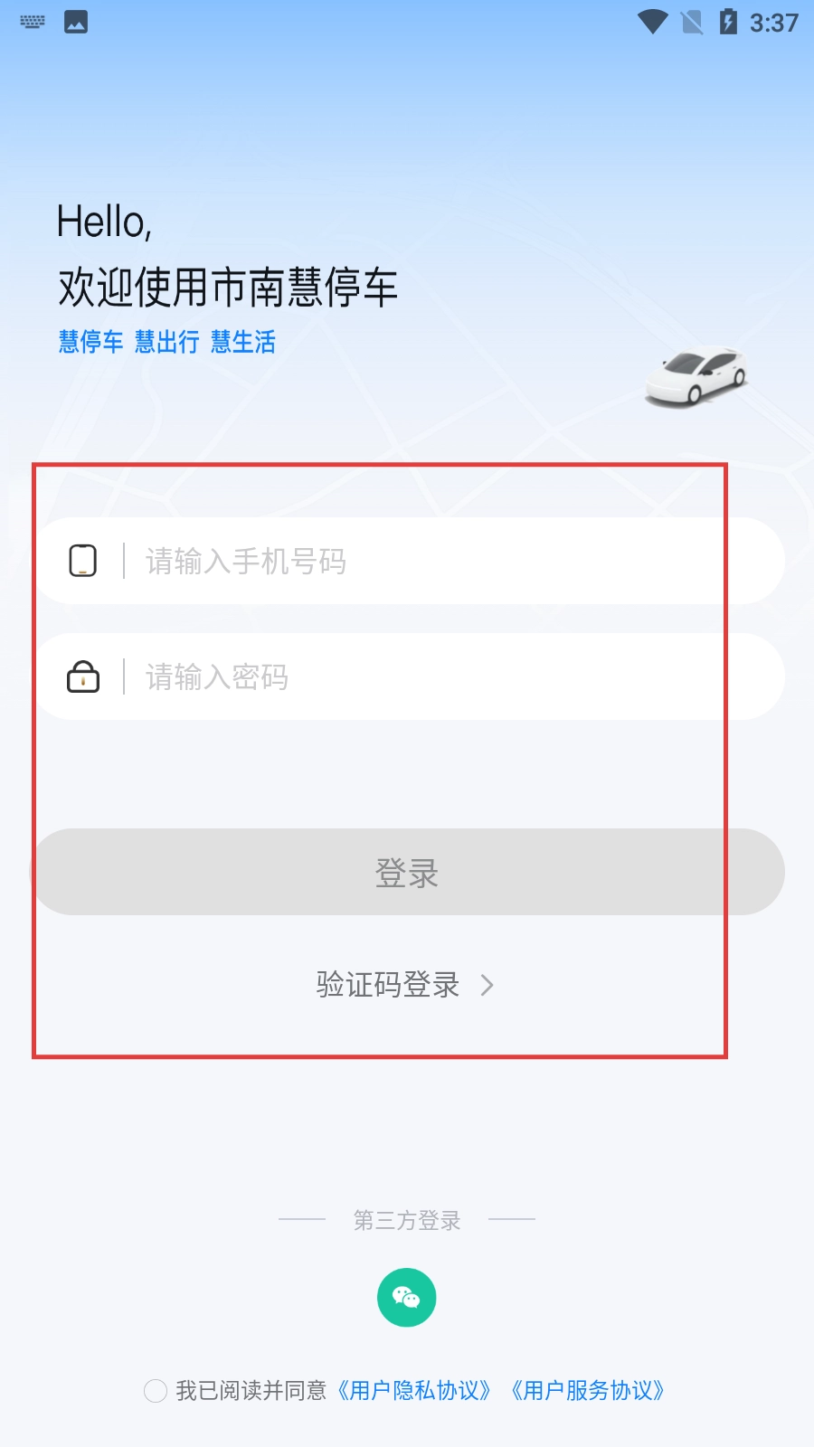 在使用【市南慧停车】服务前,需点击【同意】按钮才能开启相关功能。
