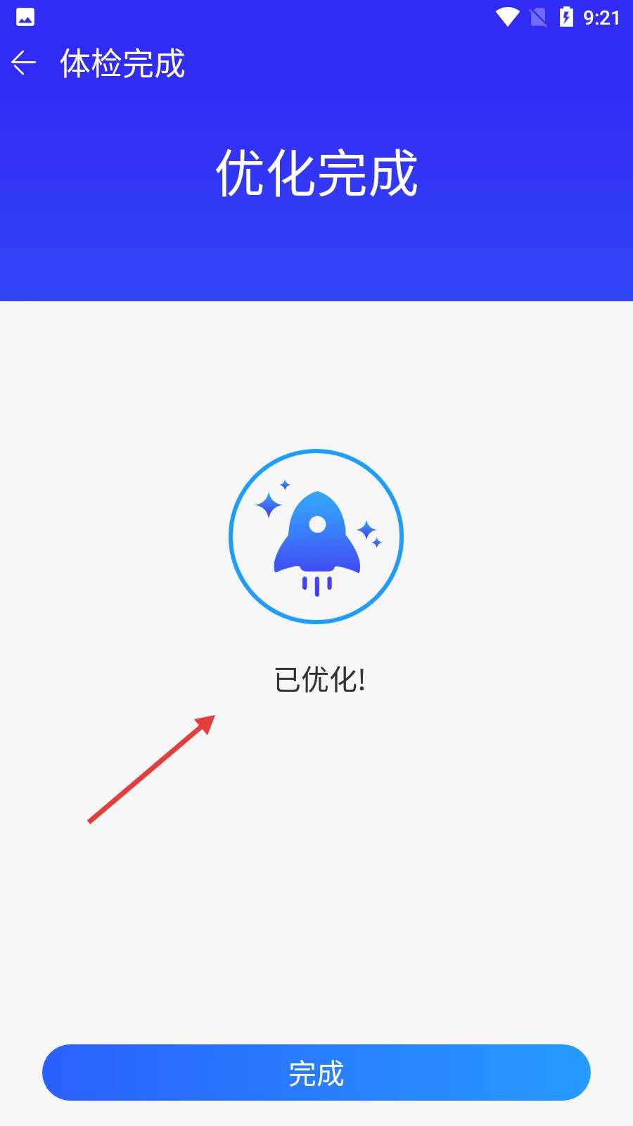 4、检测完成后,界面会显示【优化完成-已优化!】,点击【完成】按钮就能结束本次体检优化流程。