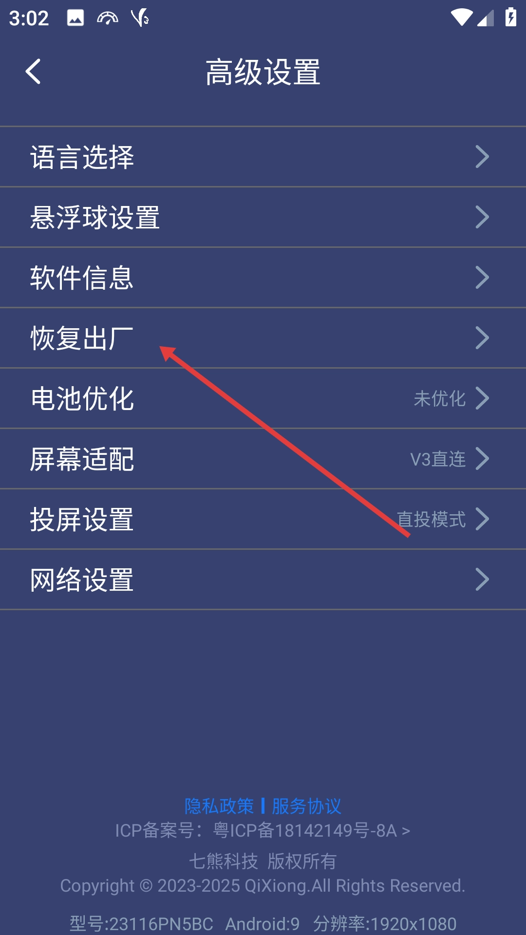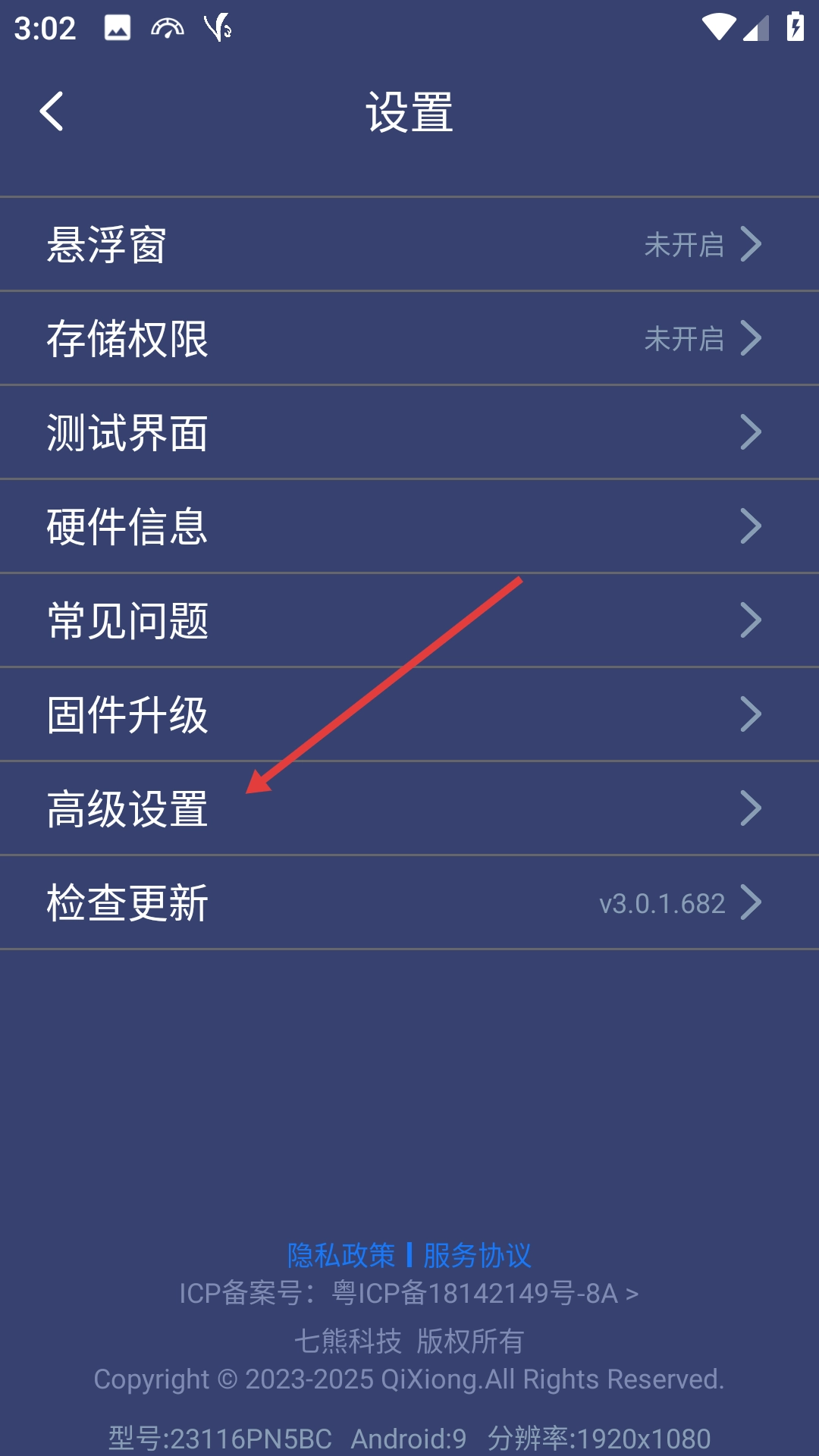 2、进入设置页面后,点击【高级设置】选项,即可进入高级设置页面。