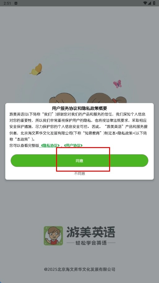 1、点击【同意-功能按钮】,以同意用户服务协议与隐私政策。