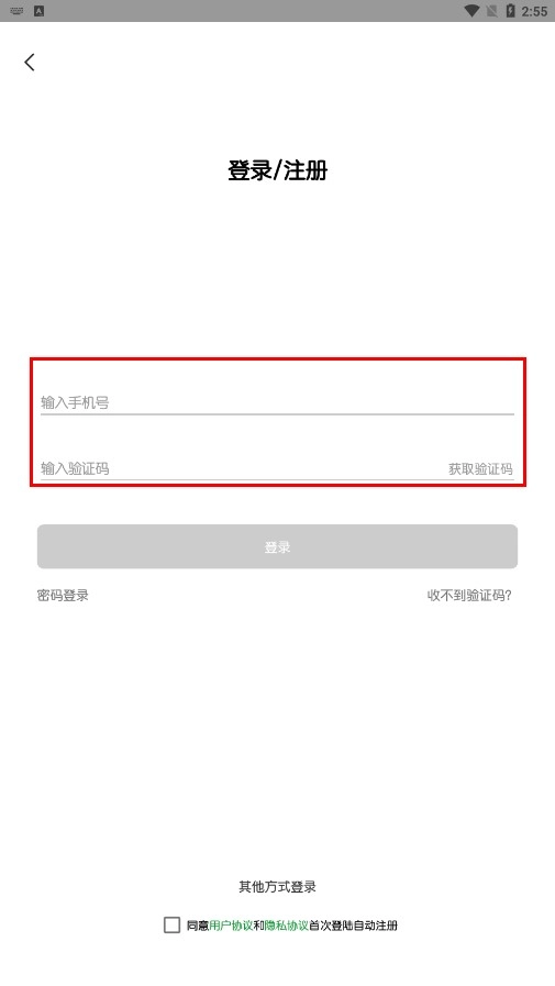 3、进入登录注册页面后,输入账号与验证码,即可完成登录流程。