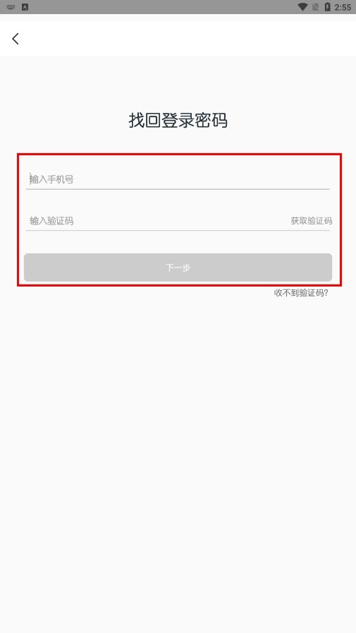 4、若不慎忘记密码,可进入找回登录密码的页面,输入账号和验证码后,点击“下一步”按钮即可完成密码找回操作。