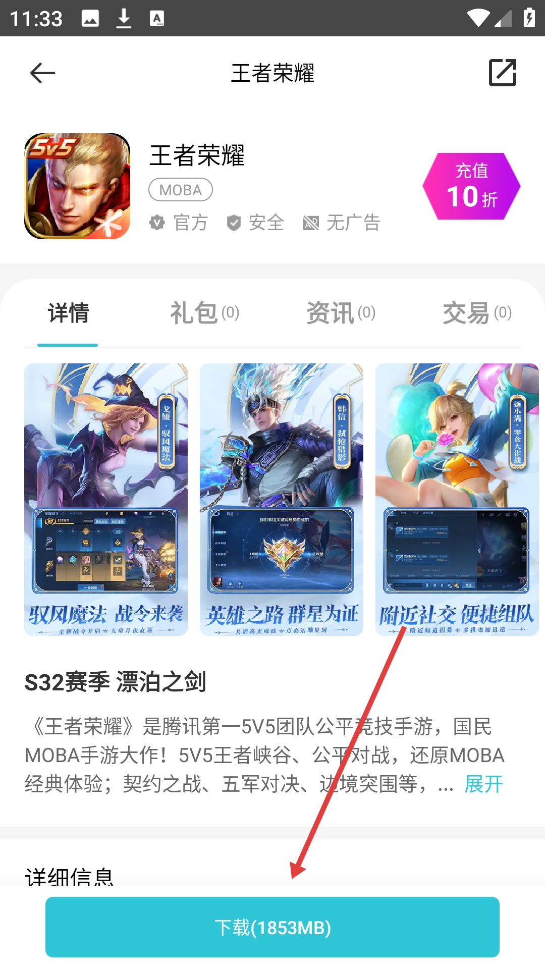 3、在搜索结果页面点击对应的名称,比如【王者荣耀】,即可进入该内容的详情页面。