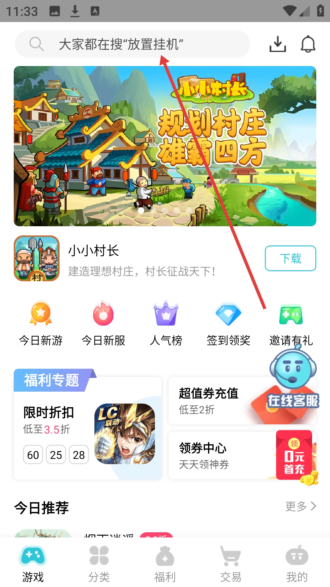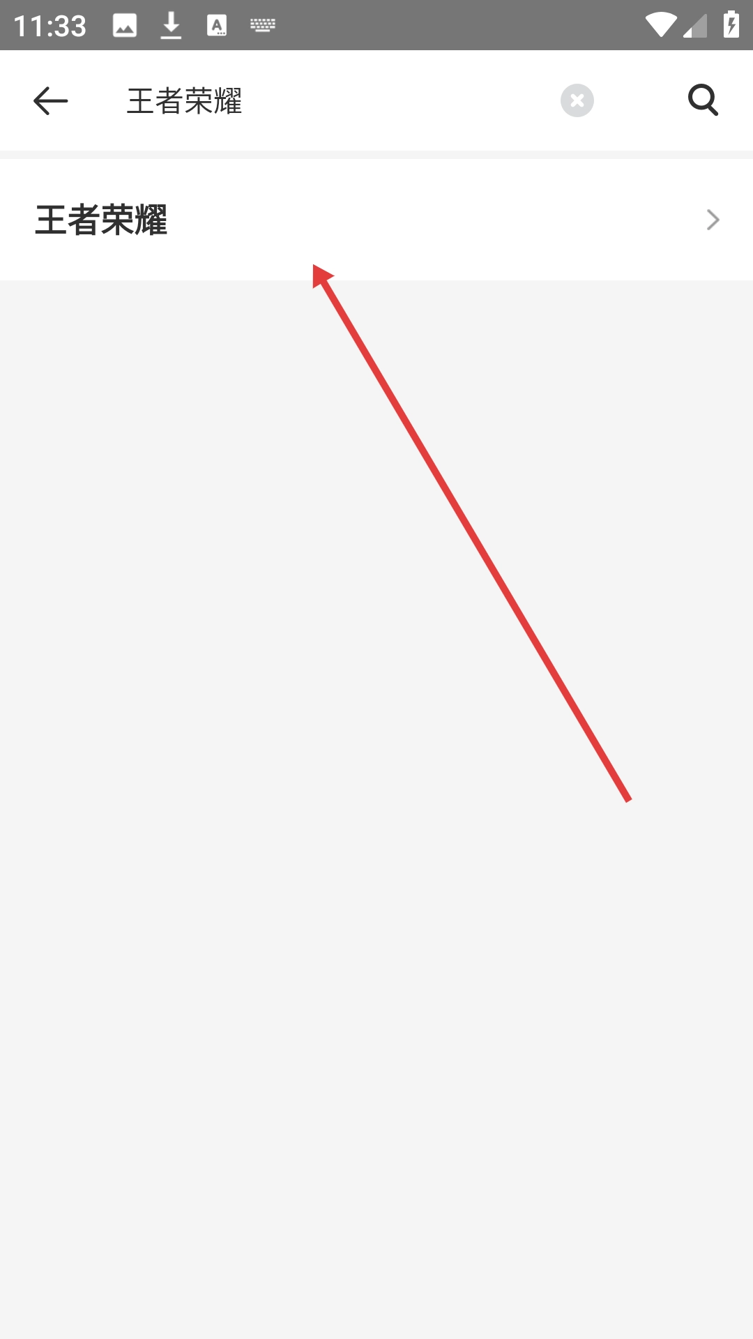 2、在搜索页面输入名称,如【王者荣耀】。