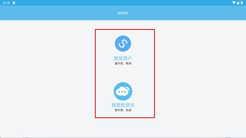 1、在角色选择页面,您可依据自身需求点击【我是用户】或【我是配送员】图标,从而进入相应角色的操作流程。