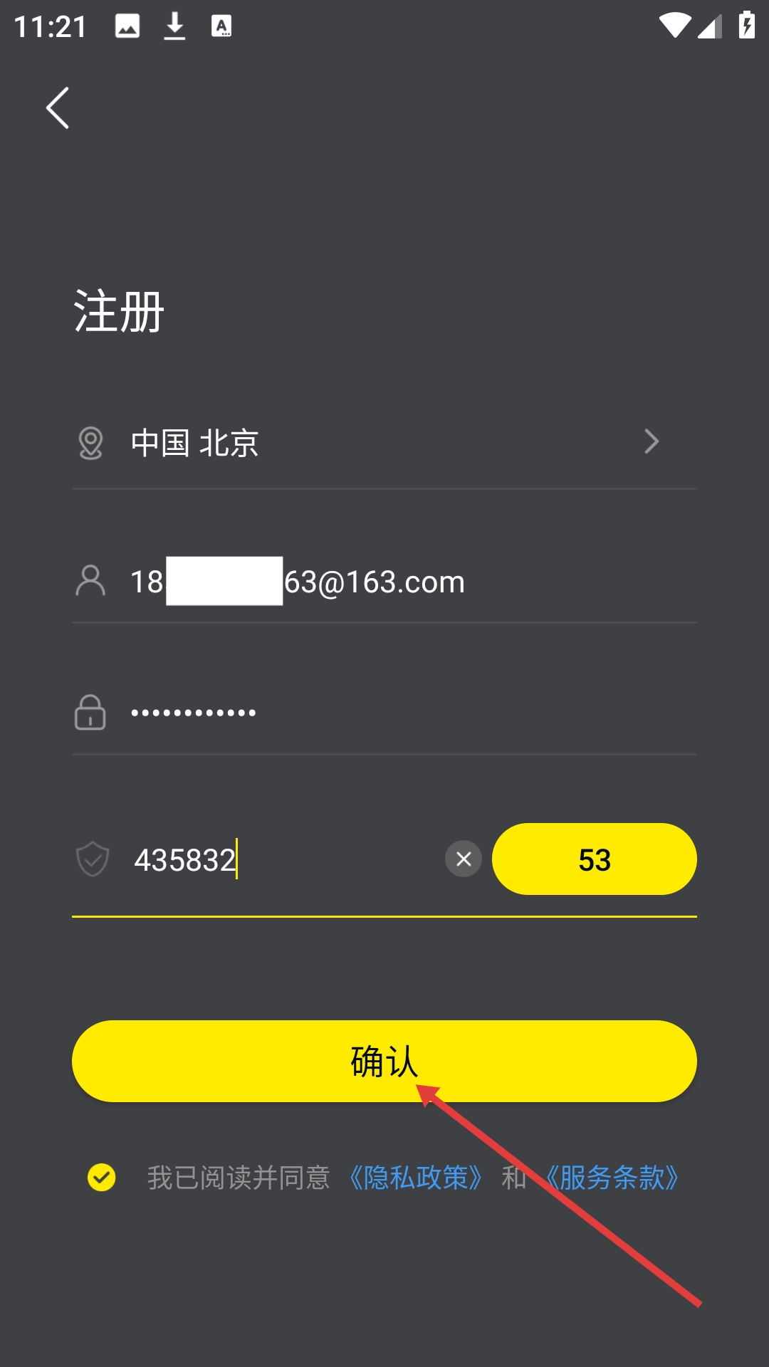 4、勾选同意协议后,点击【确认】,完成注册操作。