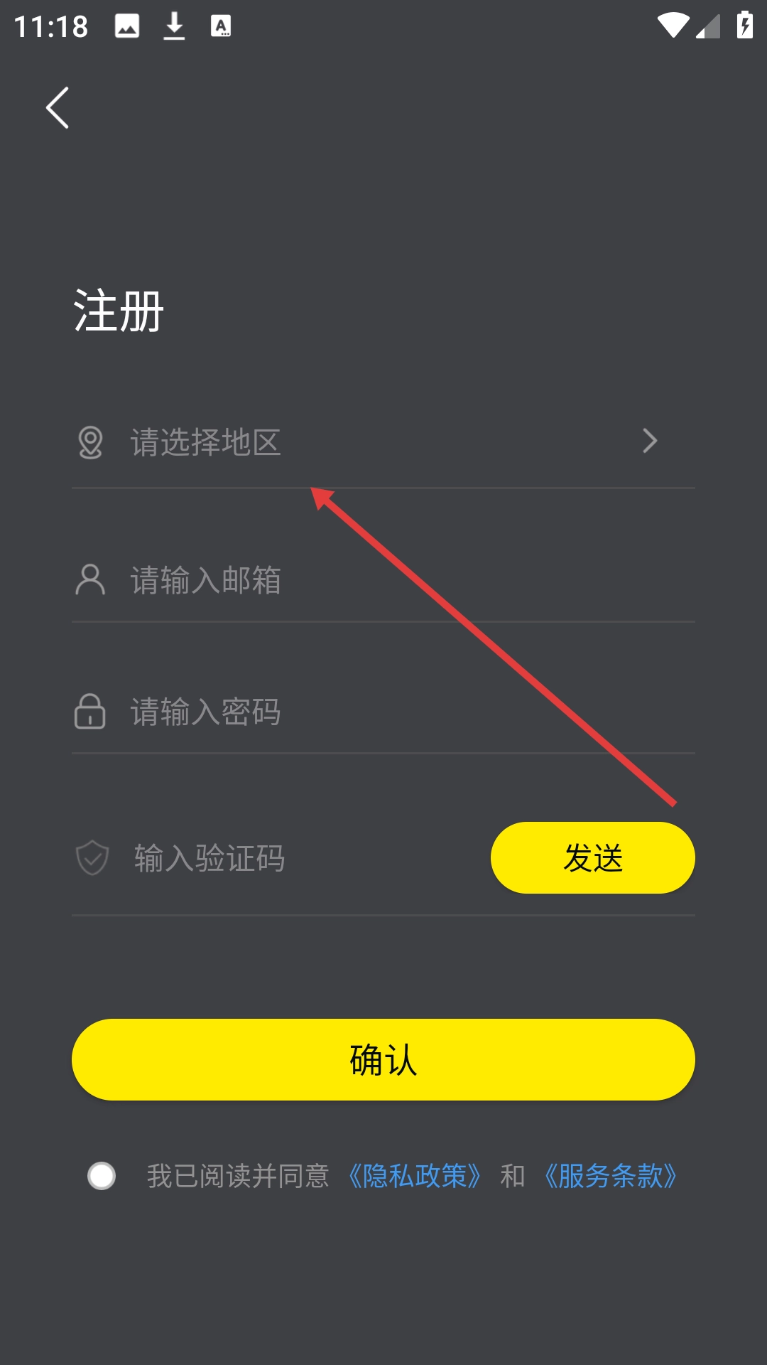 2、在注册页面找到【请选择地区】选项并点击,从中选择自己所在的地区,例如【中国-北京】。