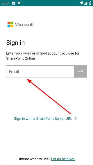 2、输入完成后,点击输入框右侧的箭头按钮,继续完成Microsoft账户的登录流程,这样才能访问SharePoint Online相关服务。