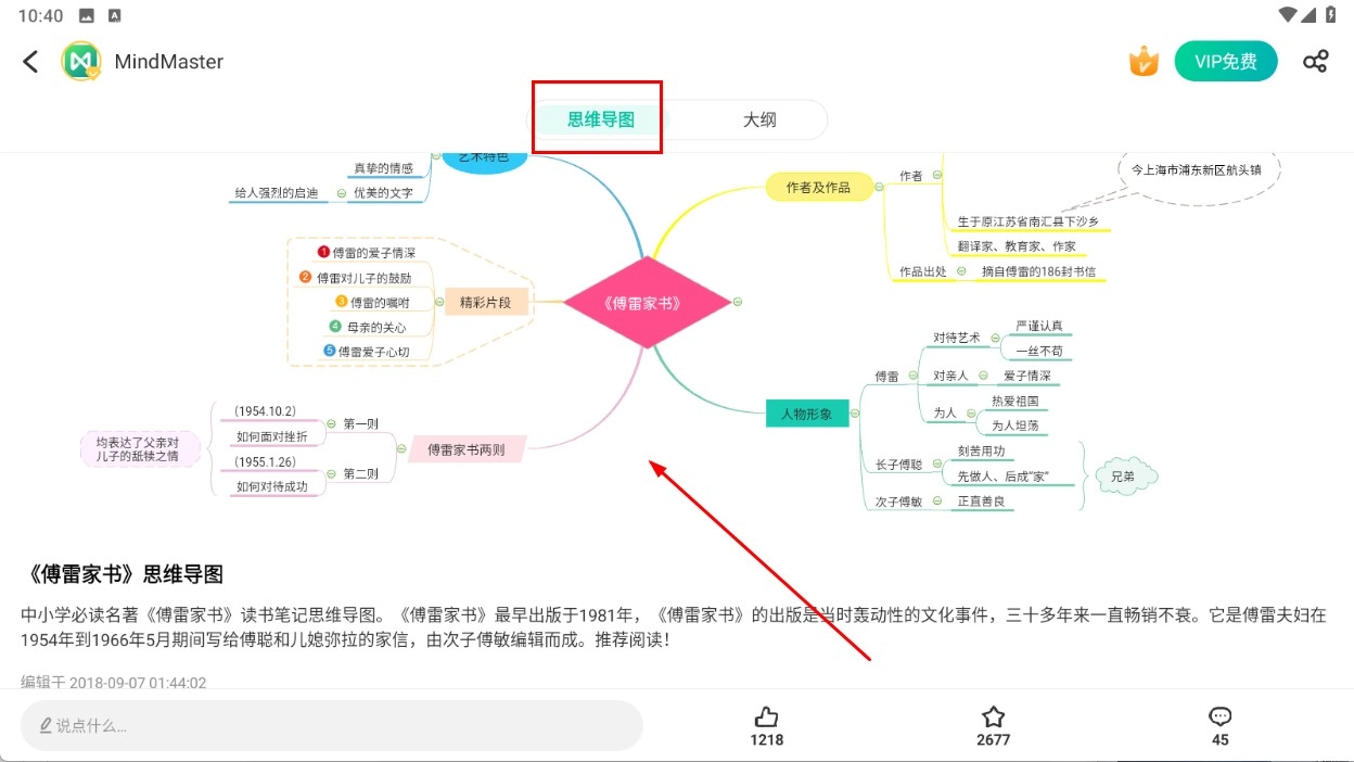 进入详情页后,即可查看《傅雷家书》在【思维导图-视图模式】下的内容结构。