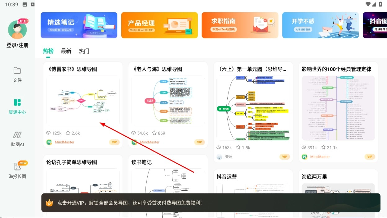 2、在热榜中找到【《傅雷家书》思维导图-内容卡片】并点击,即可查看该思维导图的详细内容。
