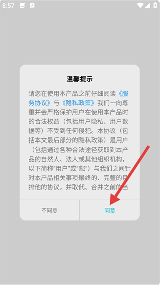 1、使用前请仔细阅读《服务协议》与《隐私政策》,点击【同意】按钮即表示您确认同意并遵守相关条款。