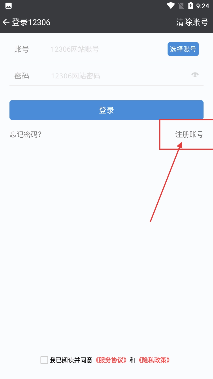 3、进入12306登录界面后,点击【注册账号】按钮,即可跳转至注册页面。