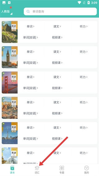 1、点击底部的【词汇】选项,进入词汇板块后,能选择高考词汇的各类分类方式,比如按词义、字母排序等,以此为英语词汇学习做好准备。