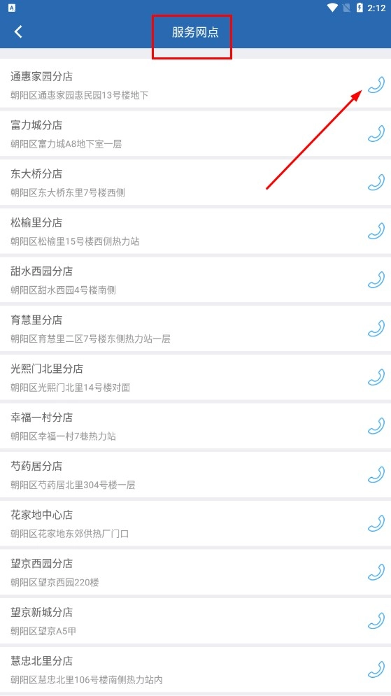 在【服务网点】列表中,点击目标分店右侧的图标,即可查看该网点的详细信息。