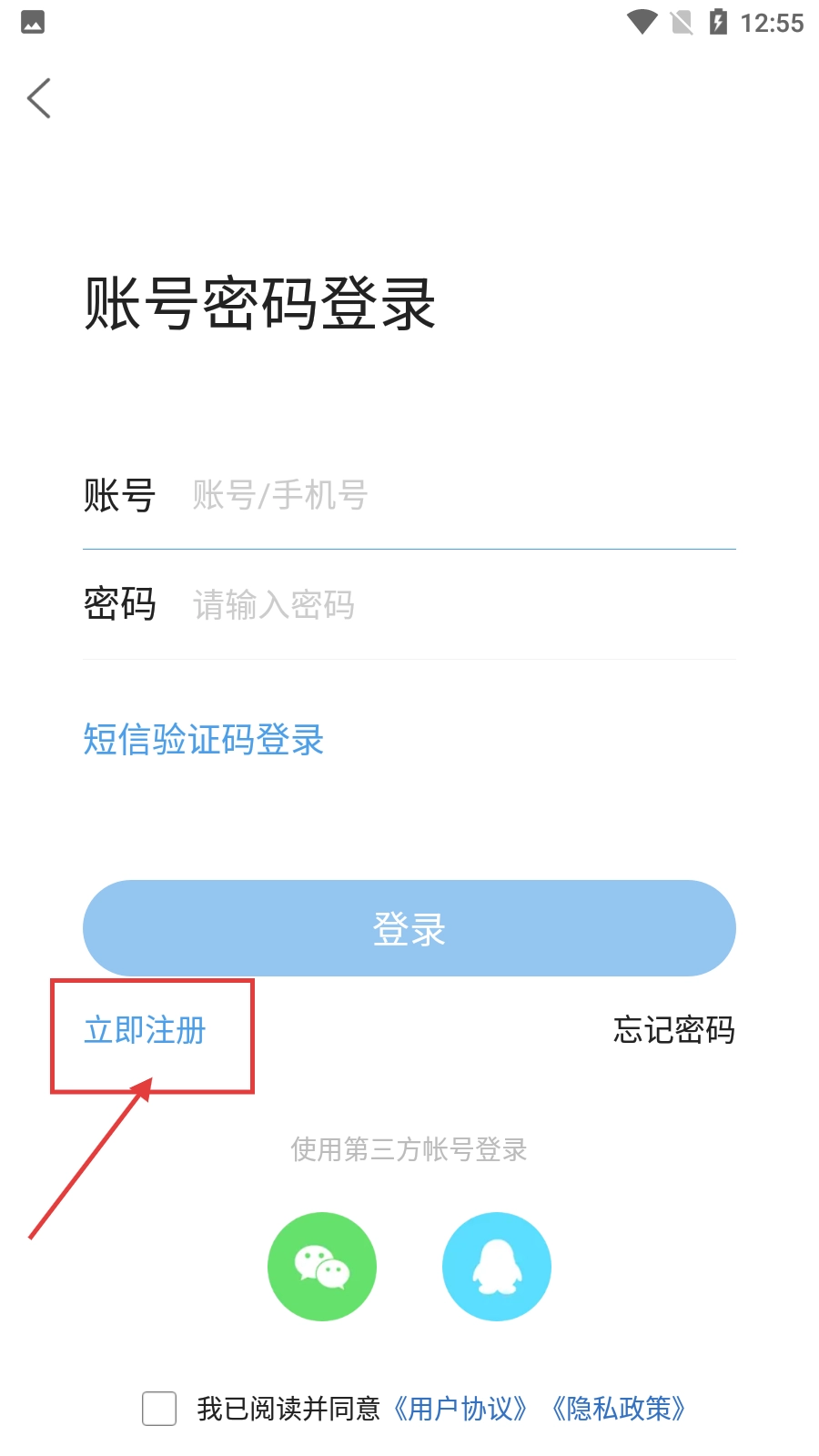 在登录界面,用户既可以选择账号密码登录,也能点击【立即注册】按钮完成账号注册,还可以通过第三方账号进行登录。