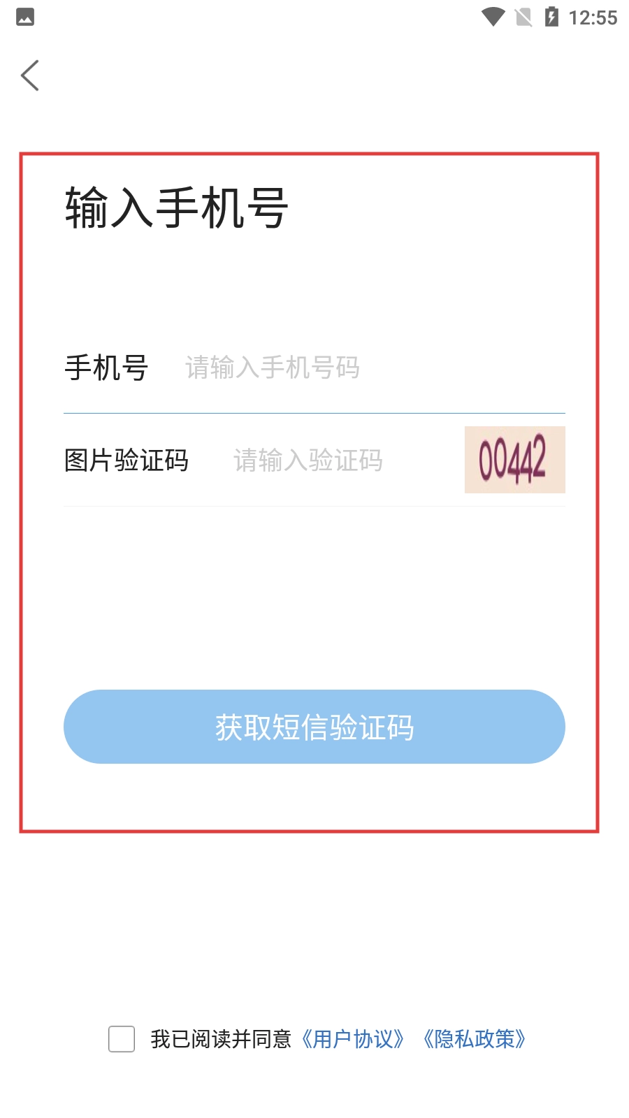 4、填写号码与图片验证码,点击【获取短信验证码】,同时勾选同意用户协议和隐私政策,走完注册步骤。