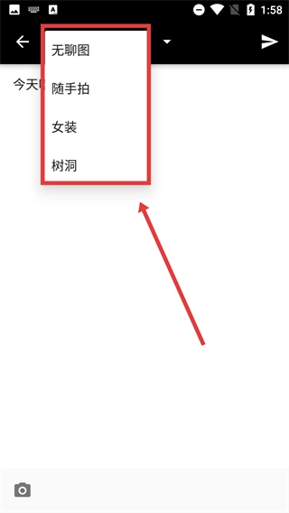 在分类列表里,你可以选择【无聊图】【随手拍】【女装】【树洞】这些分类来进行投稿。