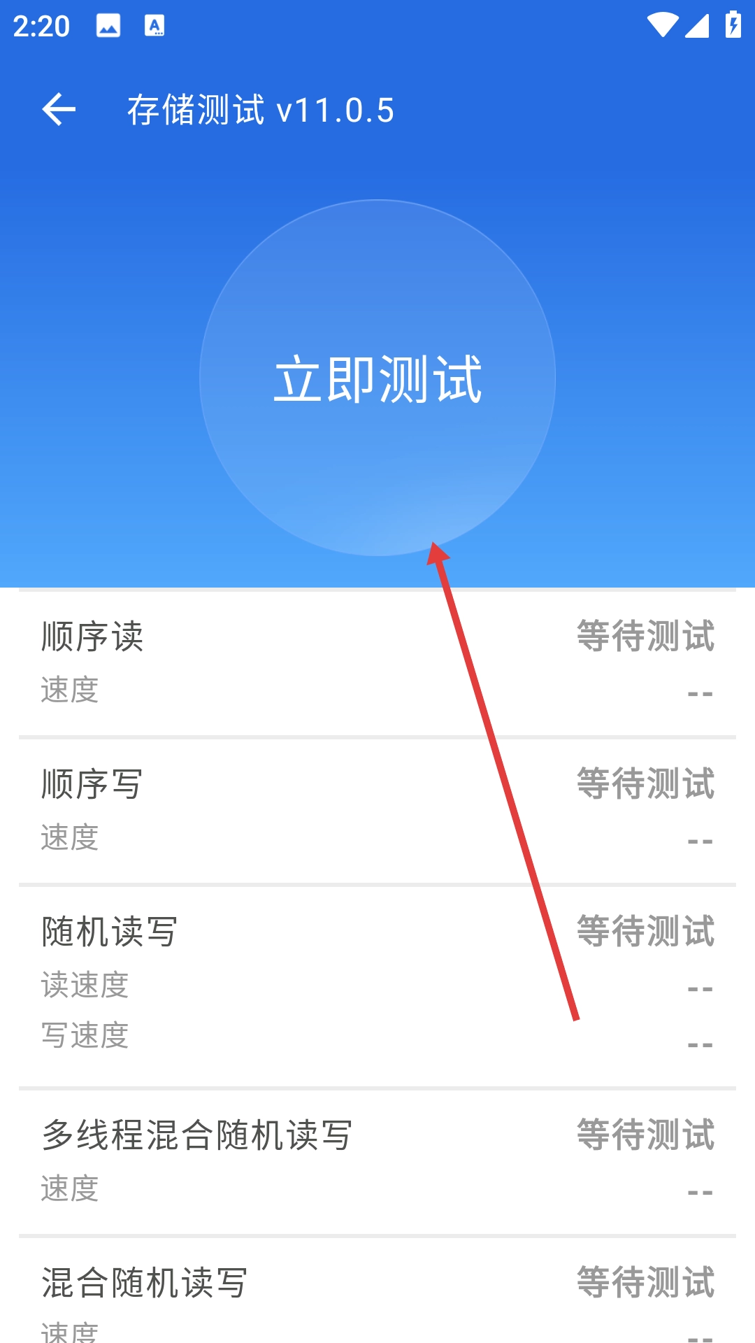 在存储测试页面点击【立即测试】按钮,即可启动存储性能测试。