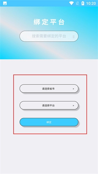 在平台绑定界面,选定省市与对应的平台后,点击【绑定】按钮,即可完成平台的绑定操作。