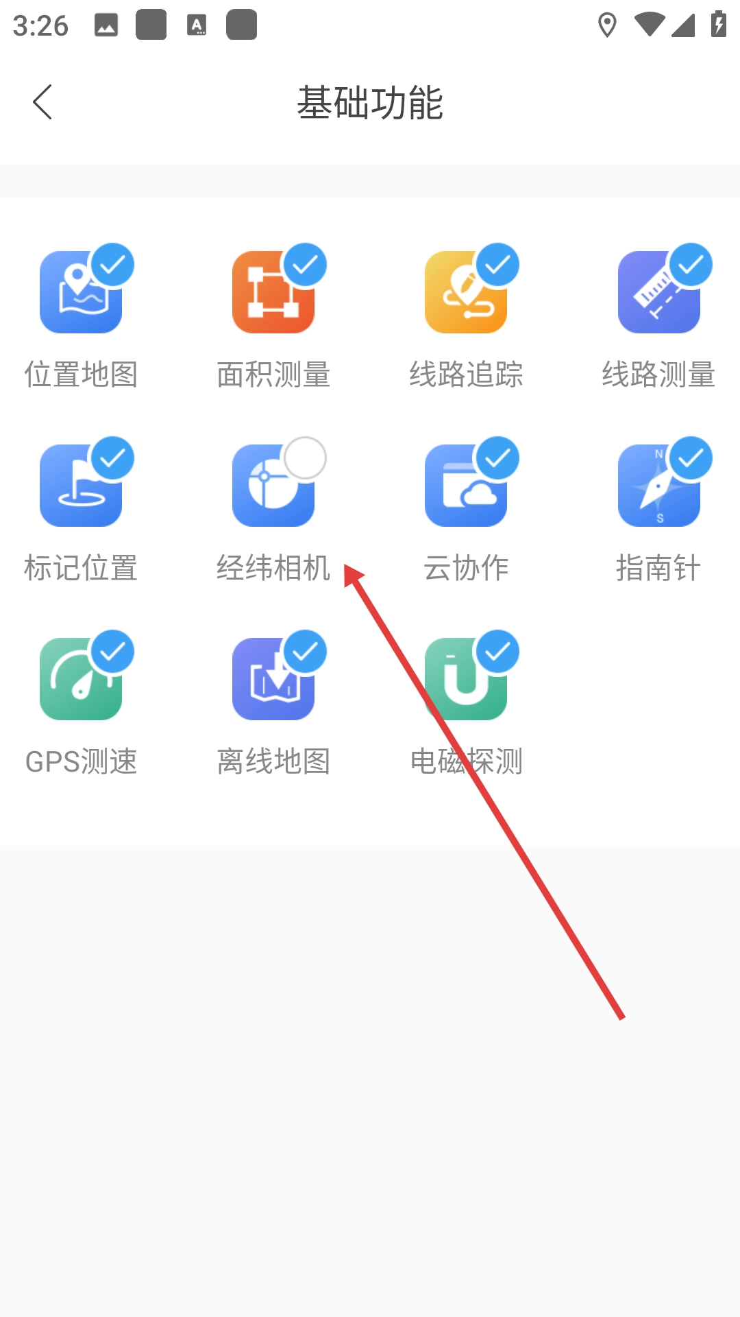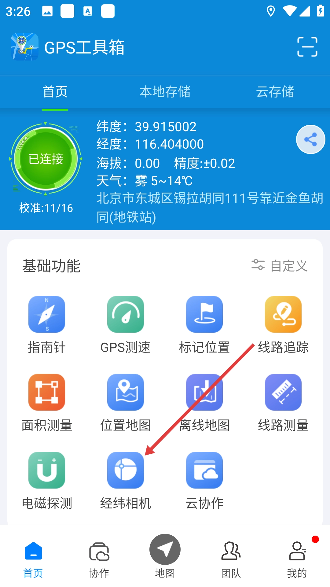 3、回到GPS工具箱首页,在基础功能区域点击【经纬相机】,进入经纬相机界面。