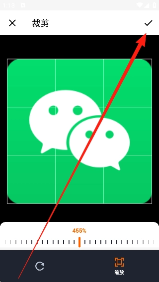 2、进入裁剪界面后,调整好图片的裁剪范围,接着点击右上角的【√】图标,即可确认并完成裁剪操作。