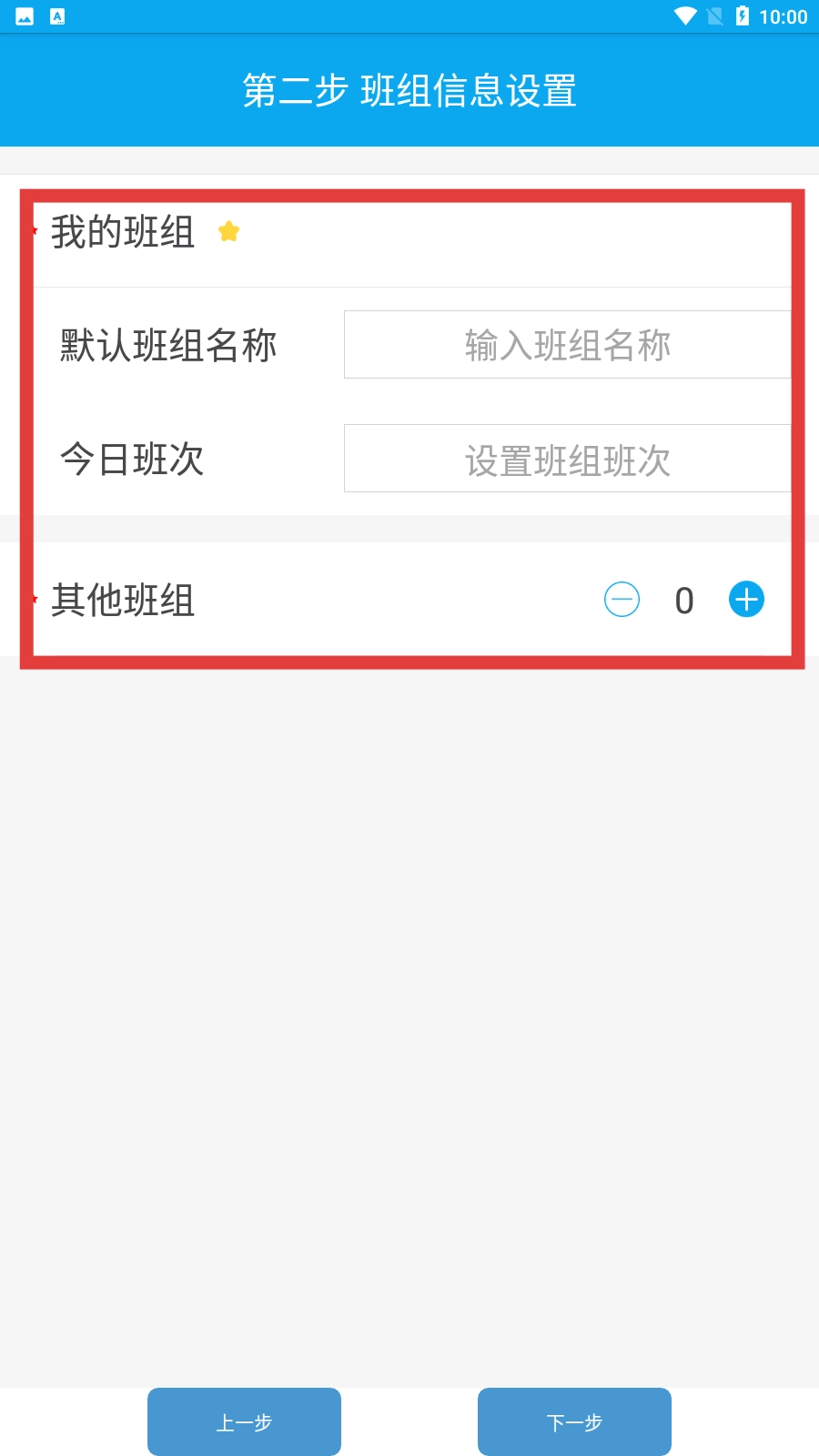 3、进入班组信息设置界面,输入班组名称、设置今日班次,还能添加其他班组。