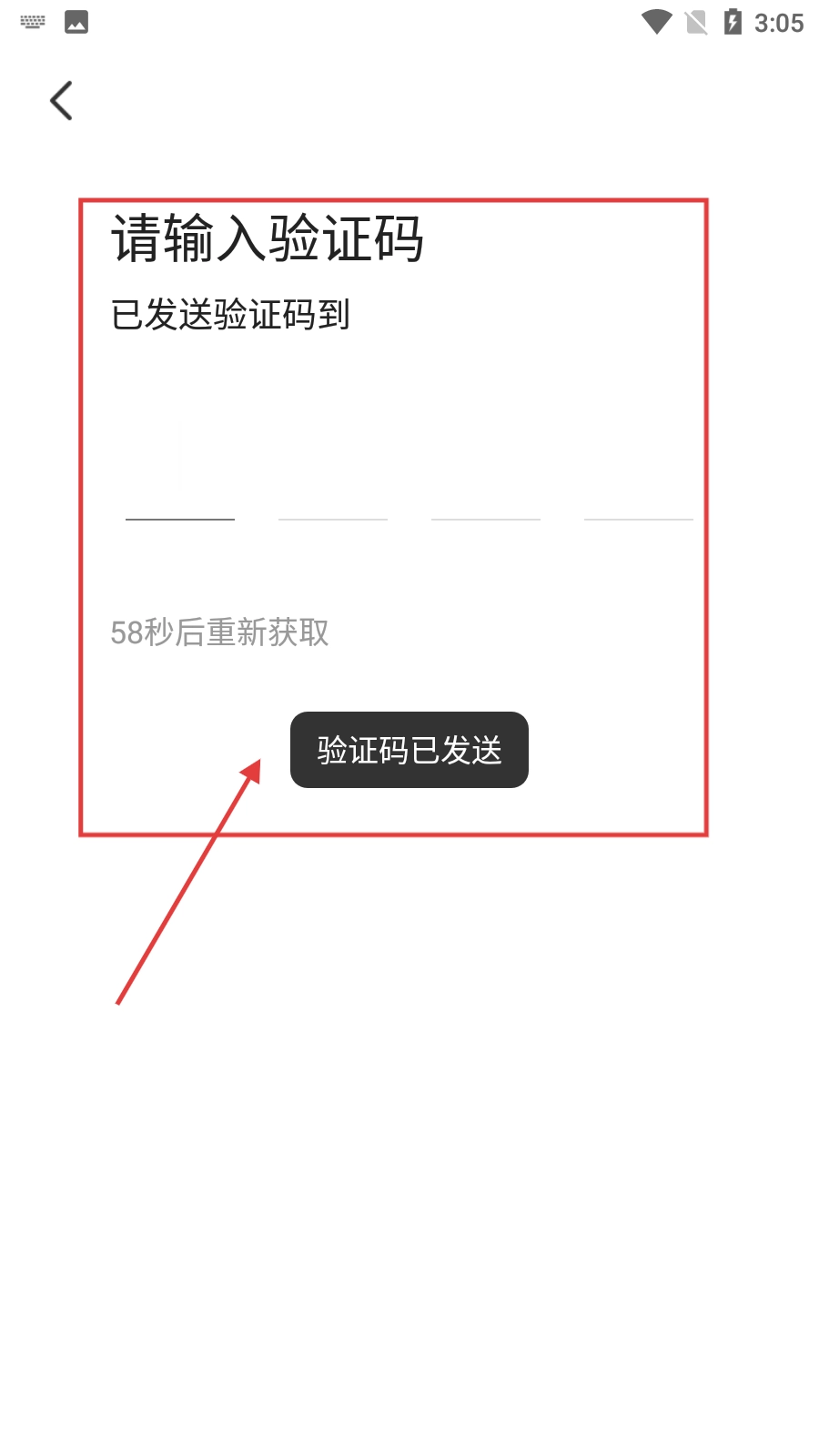 4、在验证码输入页面,输入收到的验证码,即可完成登录流程。