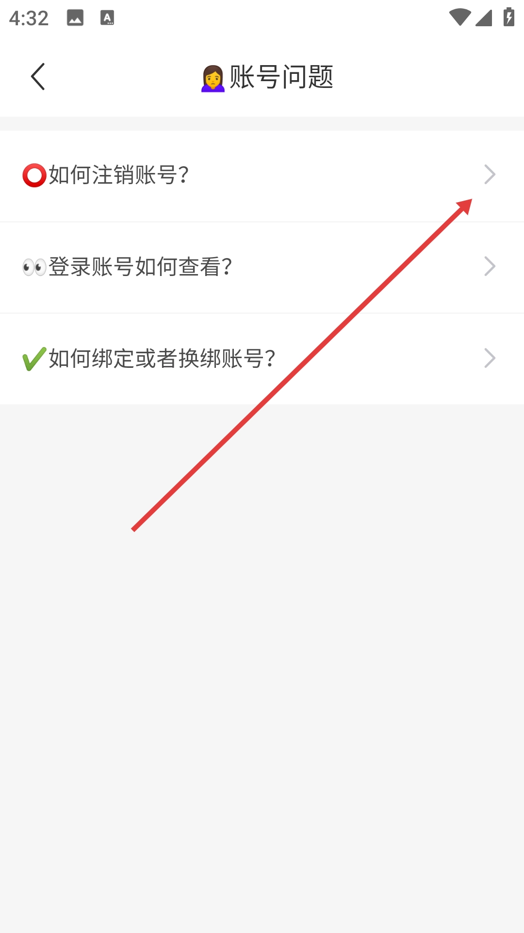 3、在账号问题页面点击【如何注销账号?】,即可进入账号注销说明页面。