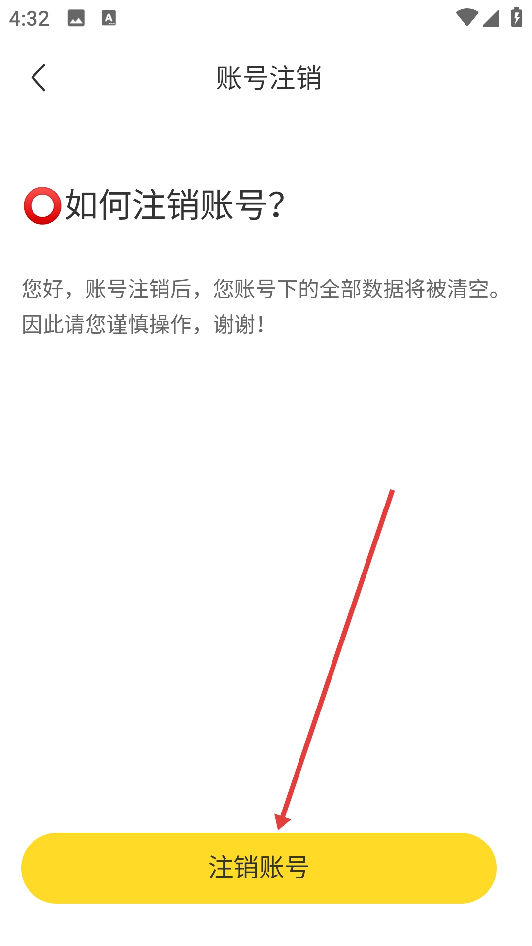 4、在账号注销说明页面点击【注销账号】按钮,即可发起账号注销操作。