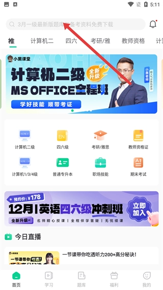 小黑课堂是一款专门面向大学生打造的工具类软件,它集计算机等级考试题库与多品类在线学习功能于一体,突破了单一考试备考软件的局限,覆盖了计算机一/二/三级、英语四六级、考研、教师资格证、专升本等大学生核心学习需求。该软件不仅收录了海量真题供用户刷题练习,还提供配套的在线精品课程,能够满足大学生提升知识技能和备考拿证的双重目标,无论是利用碎片化时间刷题,还是进行系统的课程学习,都能为用户提供精准的支持。