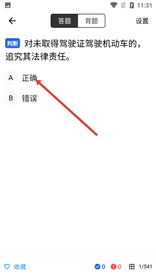 3、作答时,对于判断题,例如【对未取得驾驶证驾驶机动车的,追究其法律责任】这一题目,应选择【A-正确】选项来完成该题的回答。
