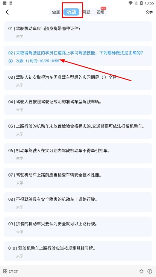 4、切换到【听题-板块】,选择题目进行听力练习。