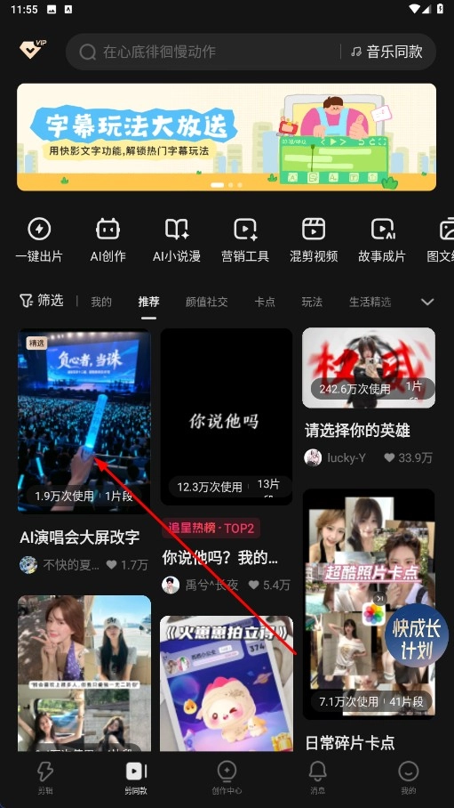 5、我们拥有丰富的创意模板库,并且会持续更新热门作品的样式供用户参考,这样一来,就算是毫无基础的创作者,也能迅速制作出高质量的视频。