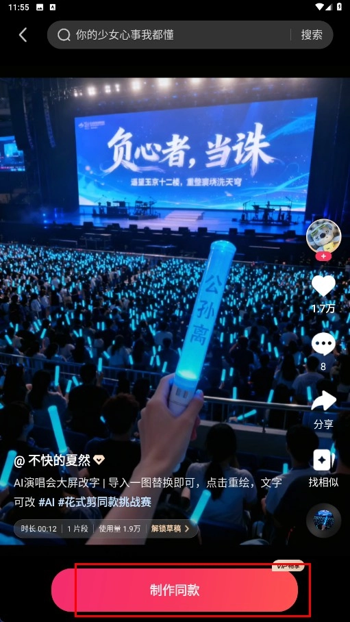1、点击【AI演唱会大屏改字-推荐模板】,进入模板详情页。