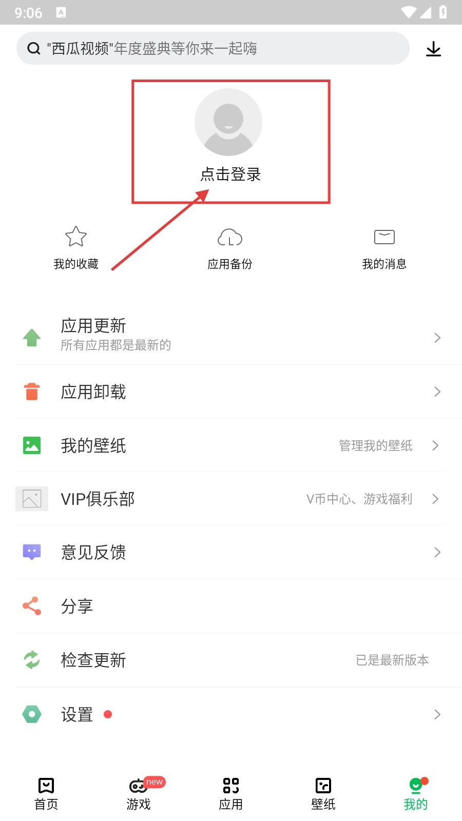 2、在个人中心页面,点击【点击登录】按钮,即可进入登录界面。