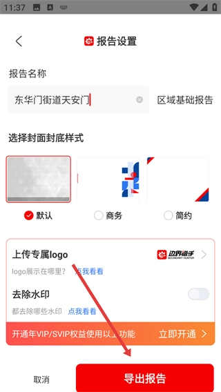 4、进入报告设置页面后,完成报告名称、封面样式等相关设置,点击【导出报告】按钮,就能导出调研报告。