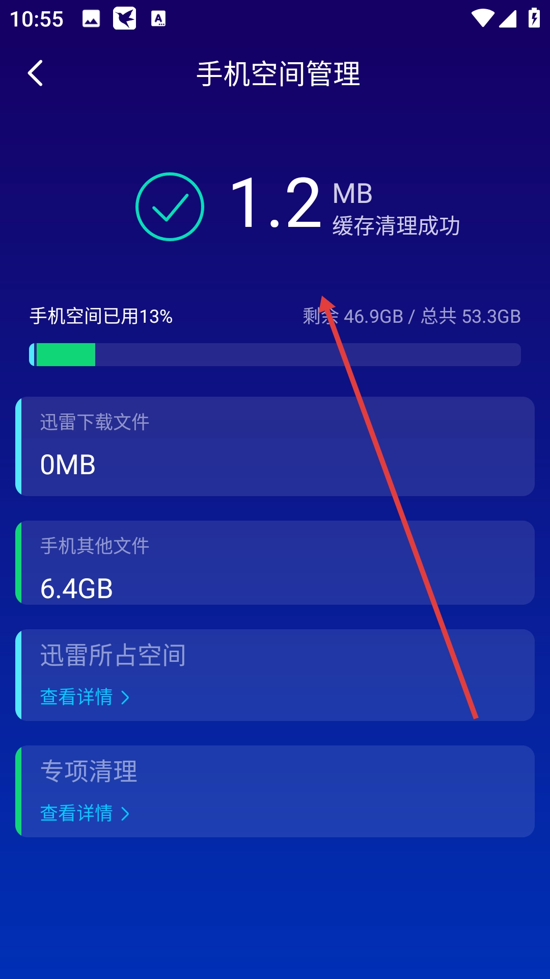 4、在空间管理页面执行缓存清理操作后,能够查看清理完成后的空间使用状况。