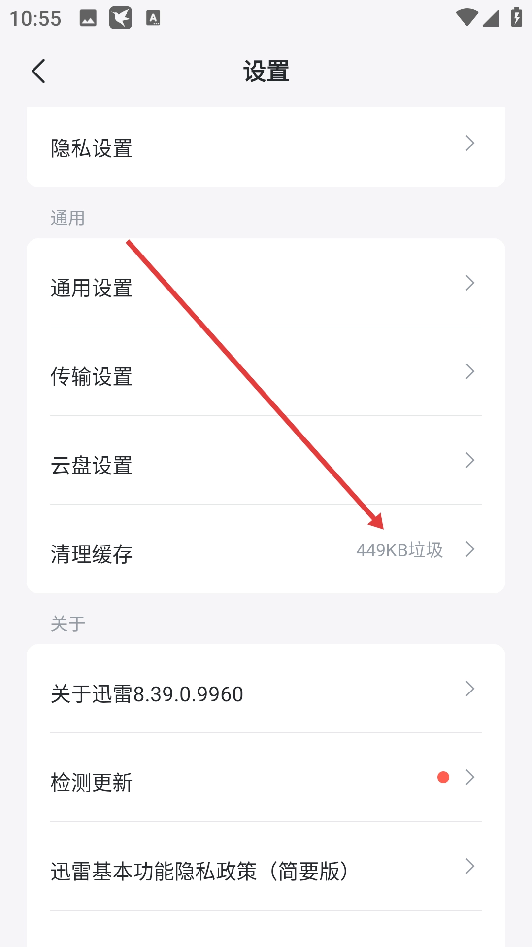 3、进入设置页面后,点击【清理缓存】选项,即可进入空间管理页面。