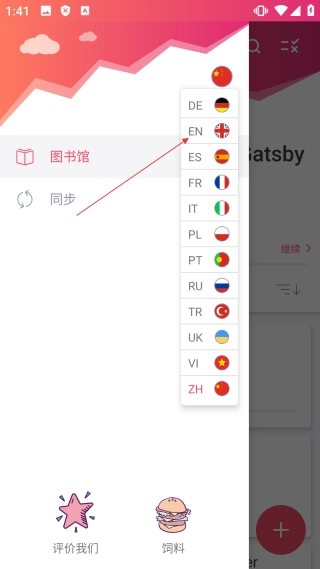 在图书馆界面,点击左上角的菜单按钮,即可弹出功能侧边栏。