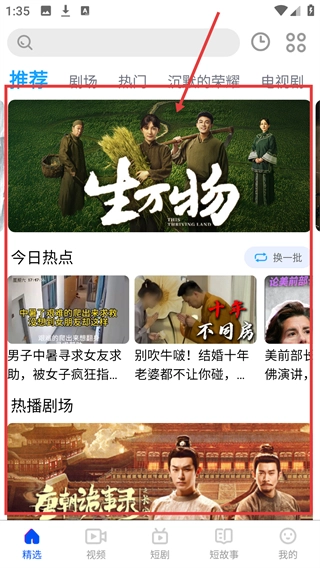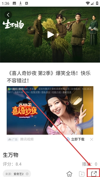 在影视平台的精选页面,找到目标内容《生万物》的封面并点击,就能进入该内容的详情页面,接下来就可以准备进行分享操作了。