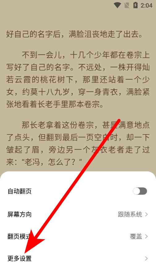 3、进入设置界面后,点击更多设置选项,即可进入阅读习惯设置页面。