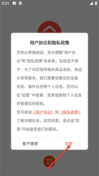 1、在用户协议与隐私政策的弹窗里,仔细阅读《用户协议》和《隐私政策》后,点击【同意】按钮,即可进入登录界面。