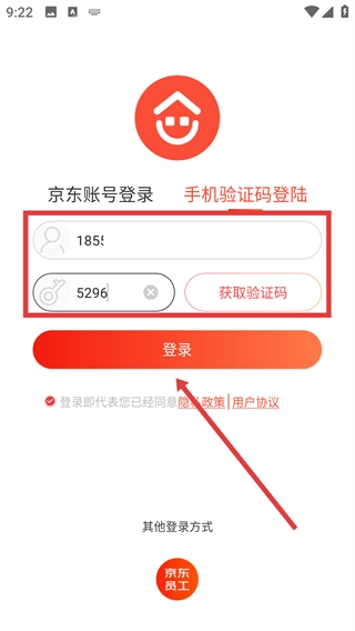 3、在验证码登录界面,输入账号和验证码后,点击【登录】按钮,就能完成登录操作。