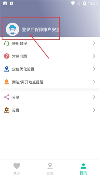 3、进入【我的】页面后,点击【登录后保障账户安全】区域会弹出登录界面,登录成功后就能使用【定位优化设置】等相关功能了。