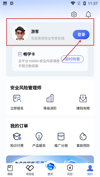 2、进入【我的】页面后,点击【登录】按钮能打开登录界面,未登录时可作为游客体验,登录后则可以使用【畅学卡】等服务。
