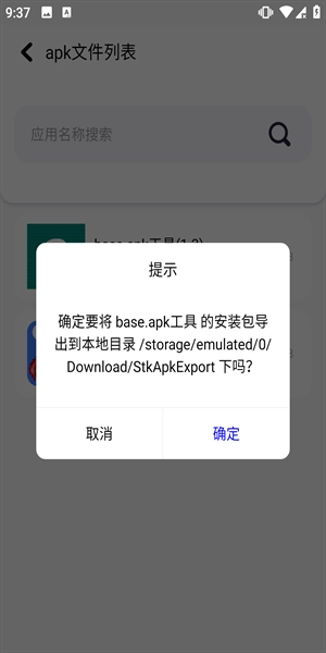 3、需要导出文件的点击应用,能看到这里有“导出到本地”的选项,点击该选项后再点击确定就可以了。