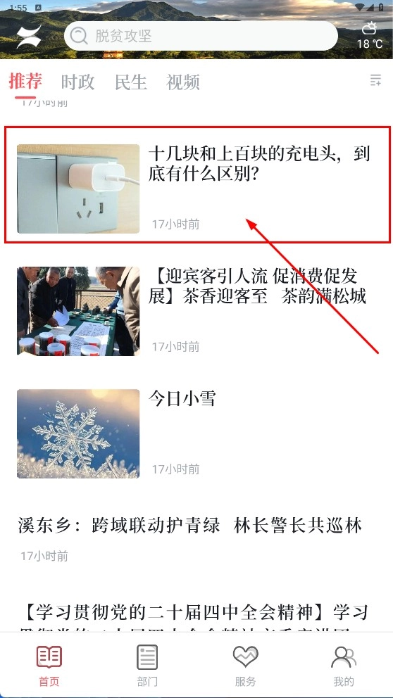 1、在首页的推荐列表里,挑选一篇你感兴趣的文章(比如《十几块和上百块的充电头,到底有什么区别?》),点击后就能进入文章的详情页面。
